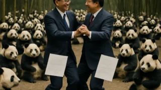 国際社会が緊張感を増す中、日中間で長きに渡る摩擦の火種に突如終止符が打たれる事となった。両国政府は、古来より友好の象徴とされてきたパンダに外交特使の役割を委ね、史上初めて“踊りながら調印”の形で平和条約を締結したことが分かった。関係筋によると、221頭のパンダが条約署名の立会いを務める未曽有の儀式が実現したという。