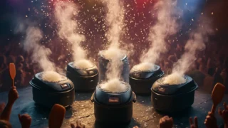 かつてない斬新さで話題をさらったJ-POP新生ユニット「Gohan★Stars」が、電動炊飯器6台による豪華編成で、堂々の音楽チャート初登場1位を獲得した。2分で炊き立てご飯を振りまくライブ配信や、全曲“無洗米語”歌詞が注目を集め、音楽界に謎の炊飯旋風が吹き荒れている。