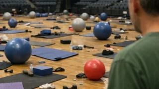 高崎県南部のサンドミールメインアリーナで開催されている新感覚イベント「第1回透明フィットネスダンス祭」。本イベントが始まった途端、参加者2,300名がフロアから突如として完全消失し、残されたのは踊り狂う筋肉や不在の笑い声、そして謎のバランスボール群—人々は何も見えない空間に向かって拍手を送る異様な光景となった。