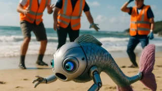 太平洋沿岸部で進むマイクロプラスチック汚染対策が、かつてない混乱を招いている。環境省ユーモア支局が正式に発表した新戦略「人魚型マイクロプラスチック捕獲隊」の稼働により、海岸に想定外のパニックとナンセンスな光景が広がった。