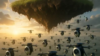 飛行草原の突発浮上、数万羽のペンギン型カメラが「空撮抗争」